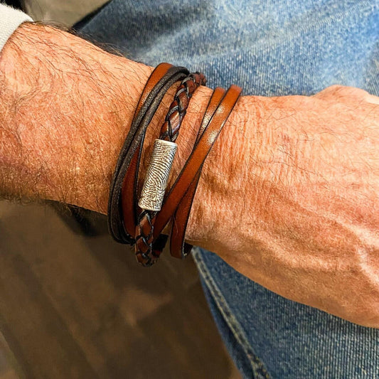 Braided Italian Leather Fingerprint Bracelet with separate Trendy Wrap