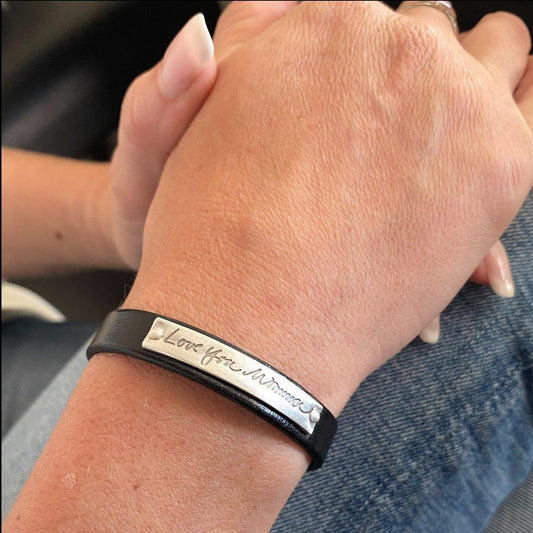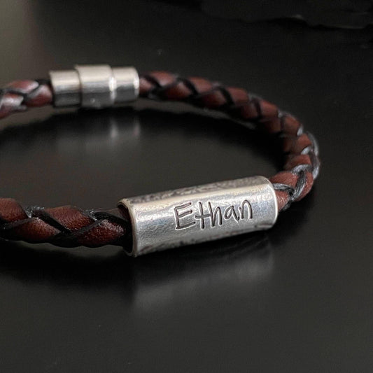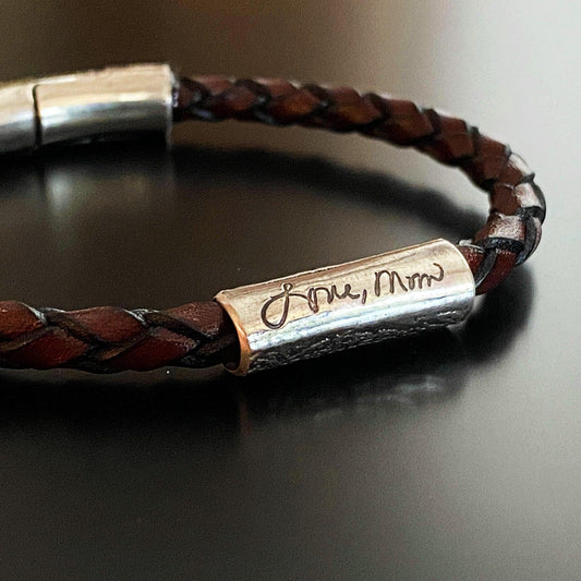Braided Italian Leather Bracelet with Handwriting, Signature, or Custom Sentiment