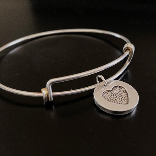 Sterling Silver Fingerprint Charm on Adj. Bangle Bracelet