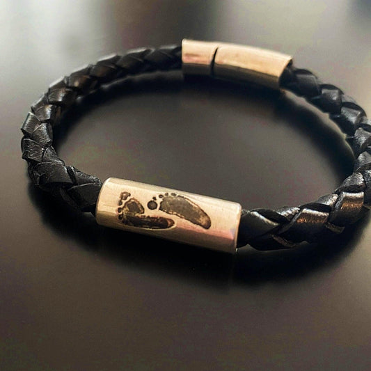 Braided Italian Leather Bracelet w/ Child's Footprint or Handprint
