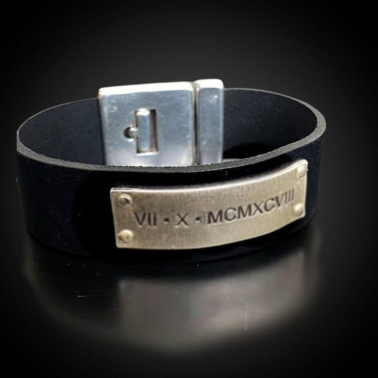 Leather Bracelet w/ Sterling Personalized Silver Plate