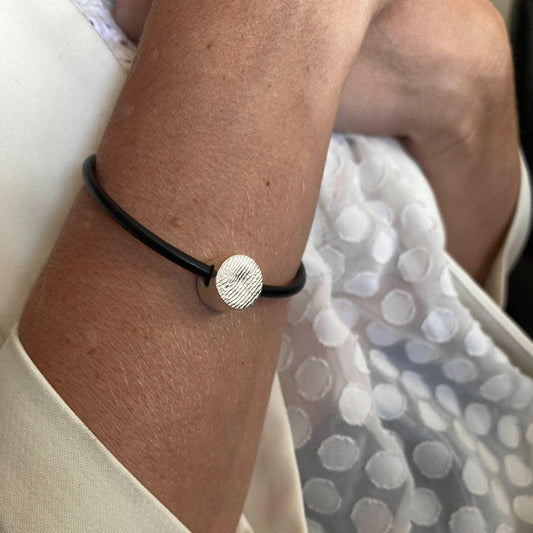 3mm Round Leather Cord Bracelet w/ Sterling Silver Fingerprint - Black