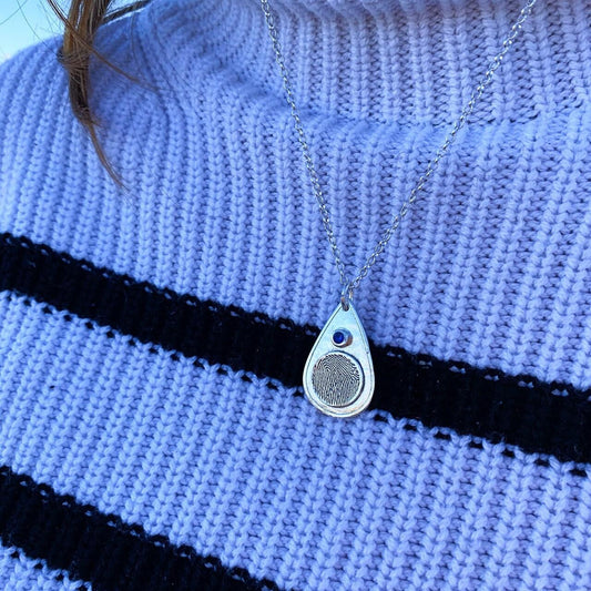 Teardrop Shape Fingerprint Pendant w/ Birthstone CZ