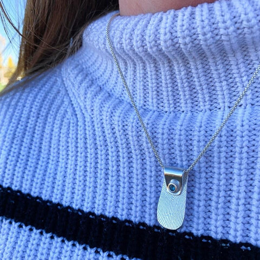Wrap Style Fingerprint Necklace w/ Birthstone CZ, Sterling Silver