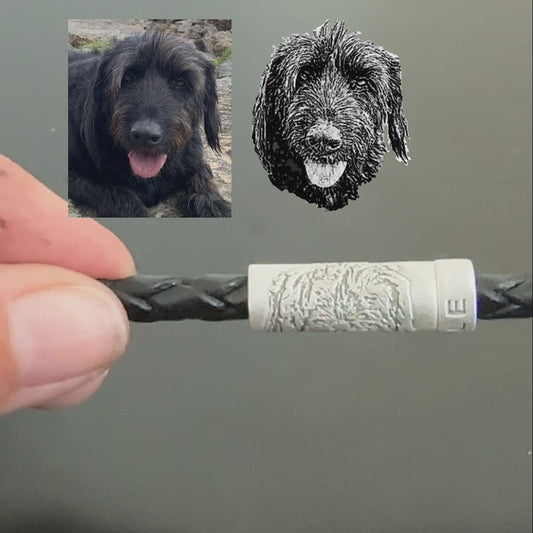 Dog Nose Memorial Imprint - Braided Leather Bracelet w/ Sterling Silver Tube Bead