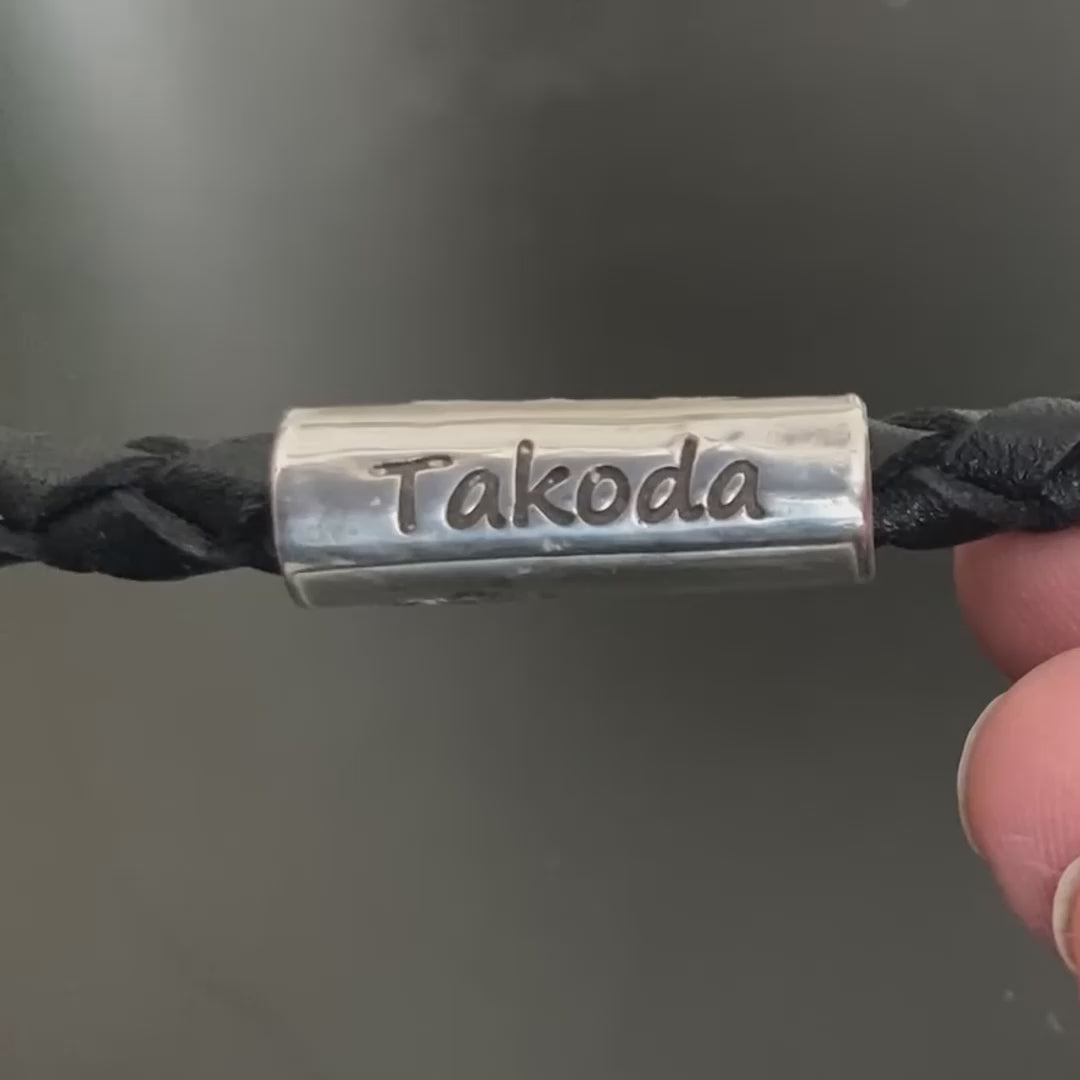 - Materials: Sterling-silver tube bead; 6 mm Italian braided leather; stainless-steel push clasp (secure, easy on/off)