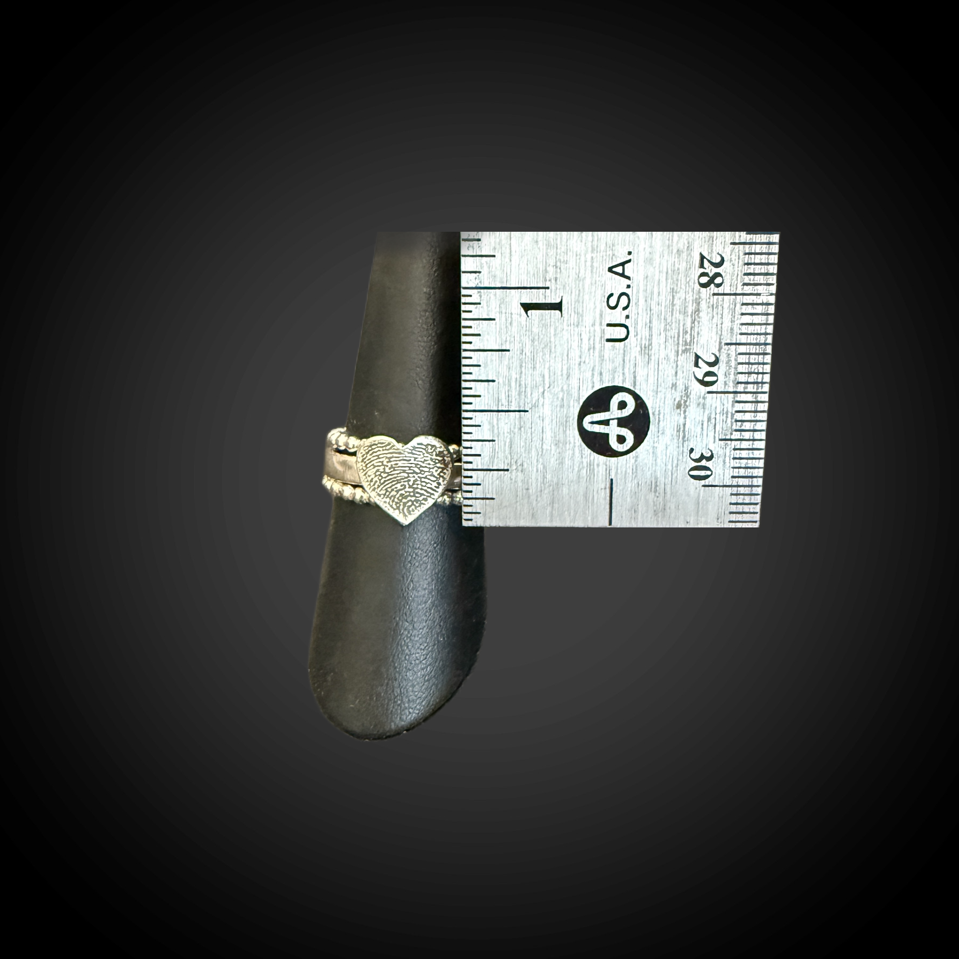 Fingerprint Heart Stacking Ring — Three Sterling Silver Bands (Memorial)