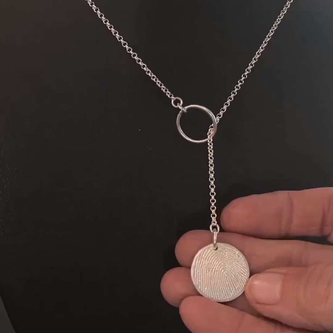 Lariat Style Fingerprint Necklace, Sterling Silver