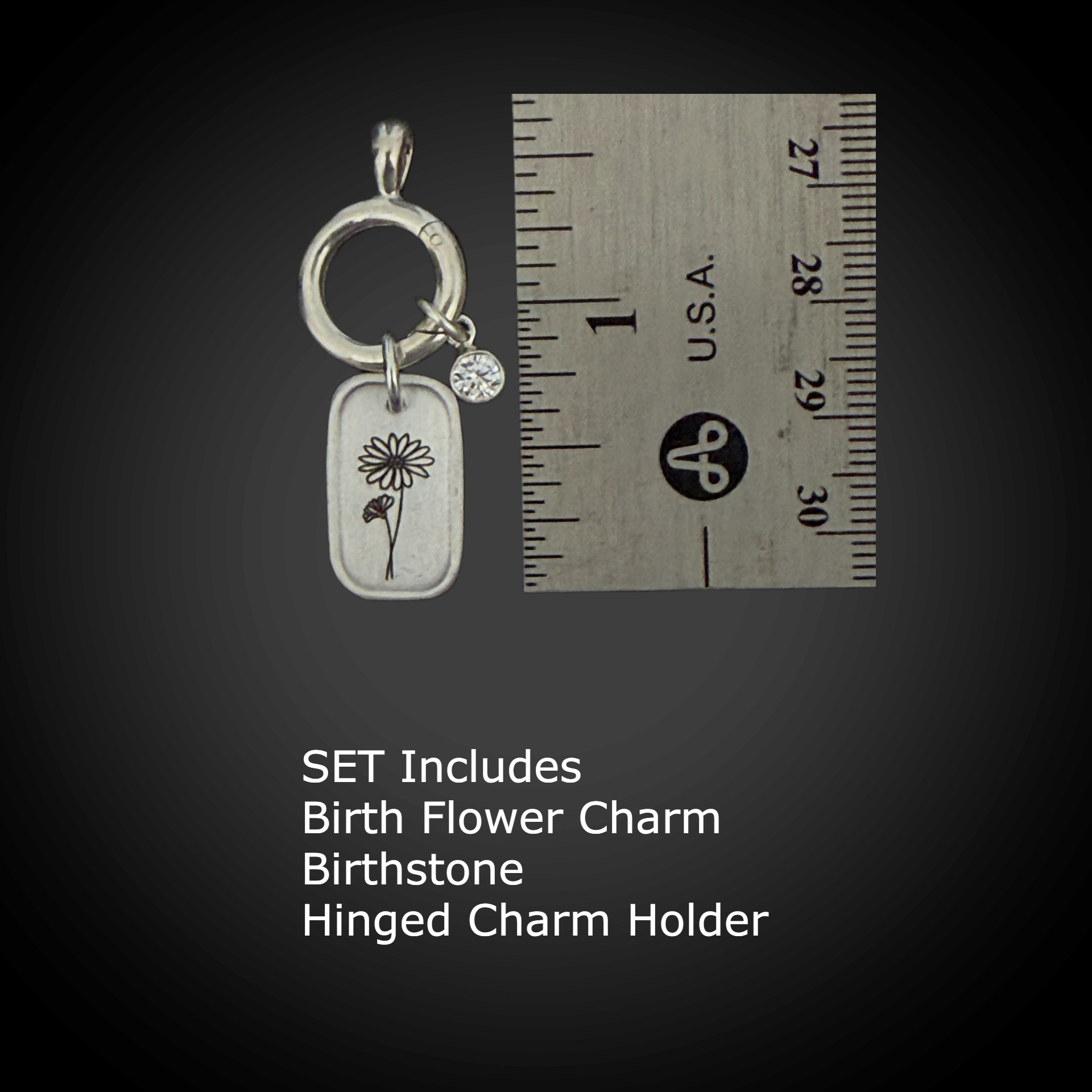Personalized April Birth Month Daisy Flower Charm: CZ Diamond Birthstone, Hinged Charm Holder easily add charms, Sterling Silver Pendant