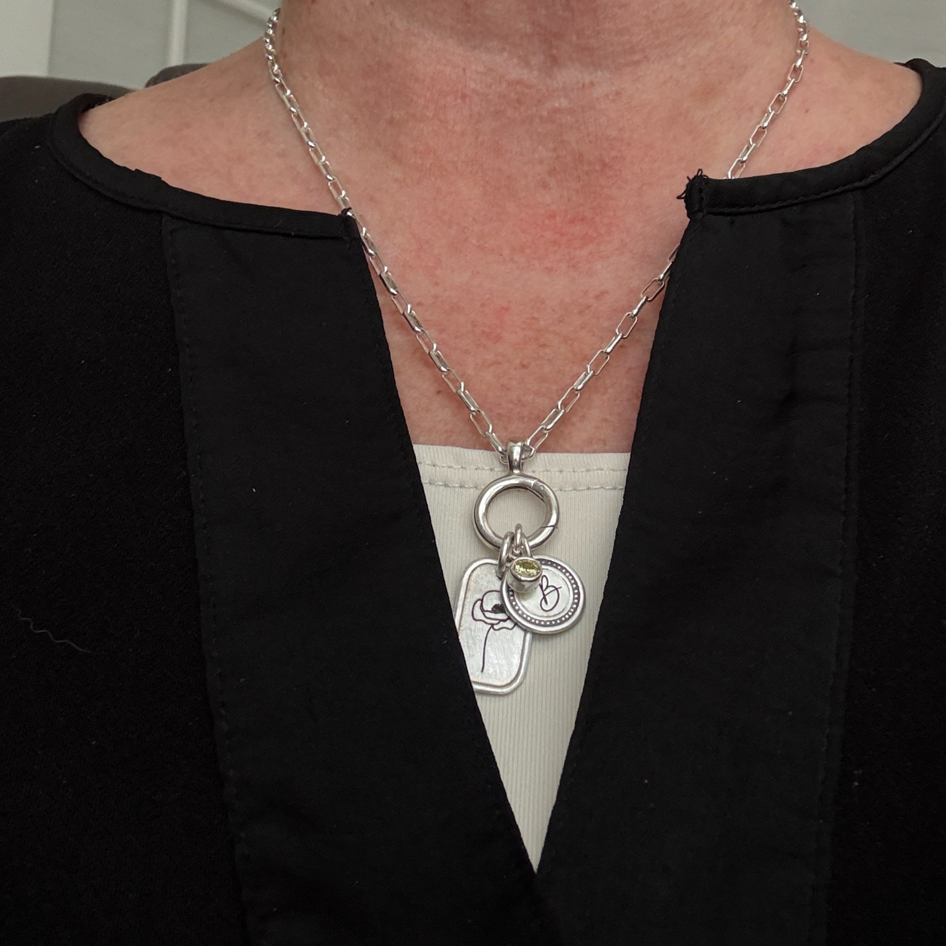 ADD 18" CHAIN NECKLACE our sleek, sterling silver 18" oval paperclip style necklace. Each thick link is approximately ¼” length x 1/8” width giving it a streamlined look perfect as the foundation for your birth month flower charm pendant. This chain is plated with fine silver to ensure a bright white color and to help protect against tarnish.
