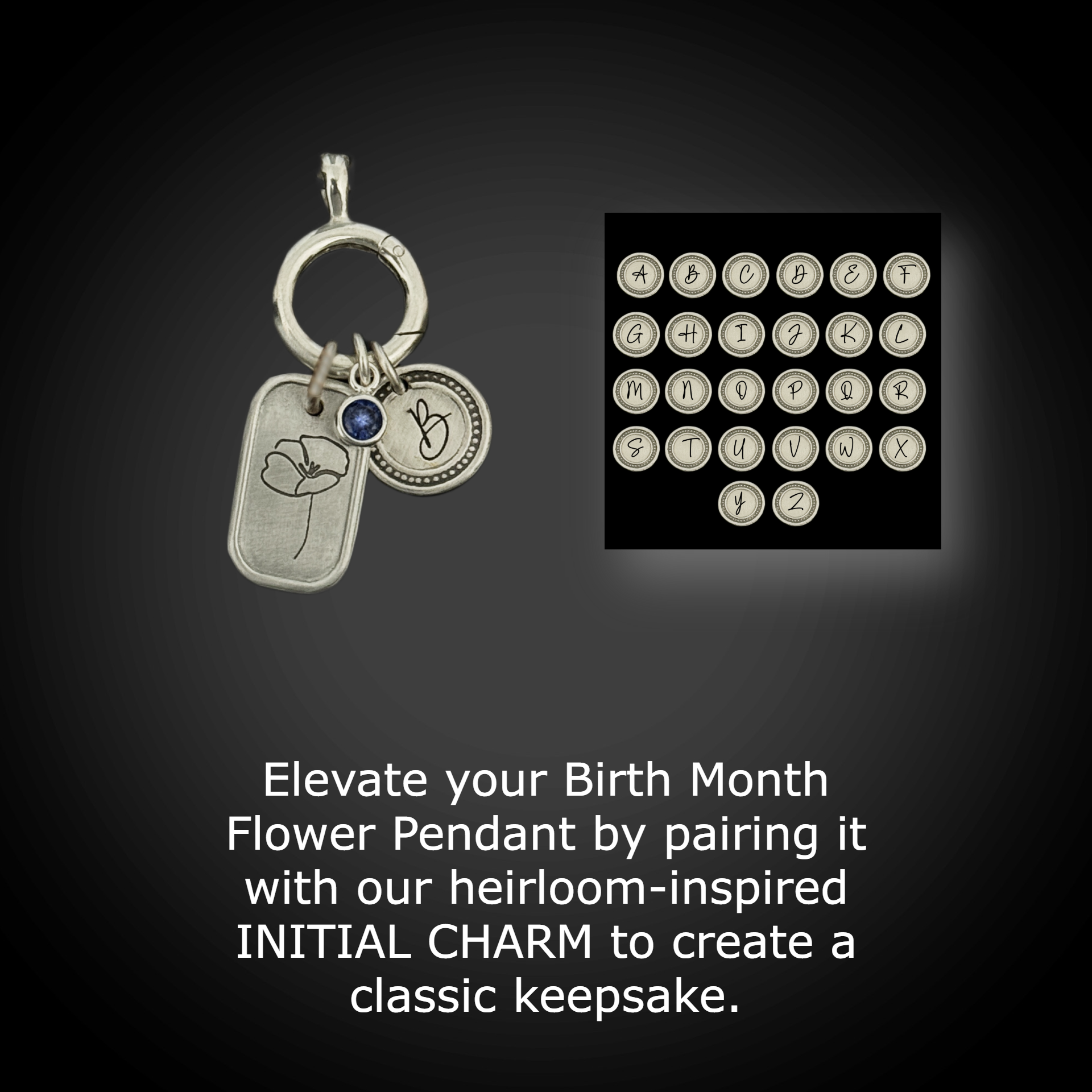 ADD INITIAL CHARM sterling silver heirloom-inspired INITIAL CHARM. Size is approximately 1/2"