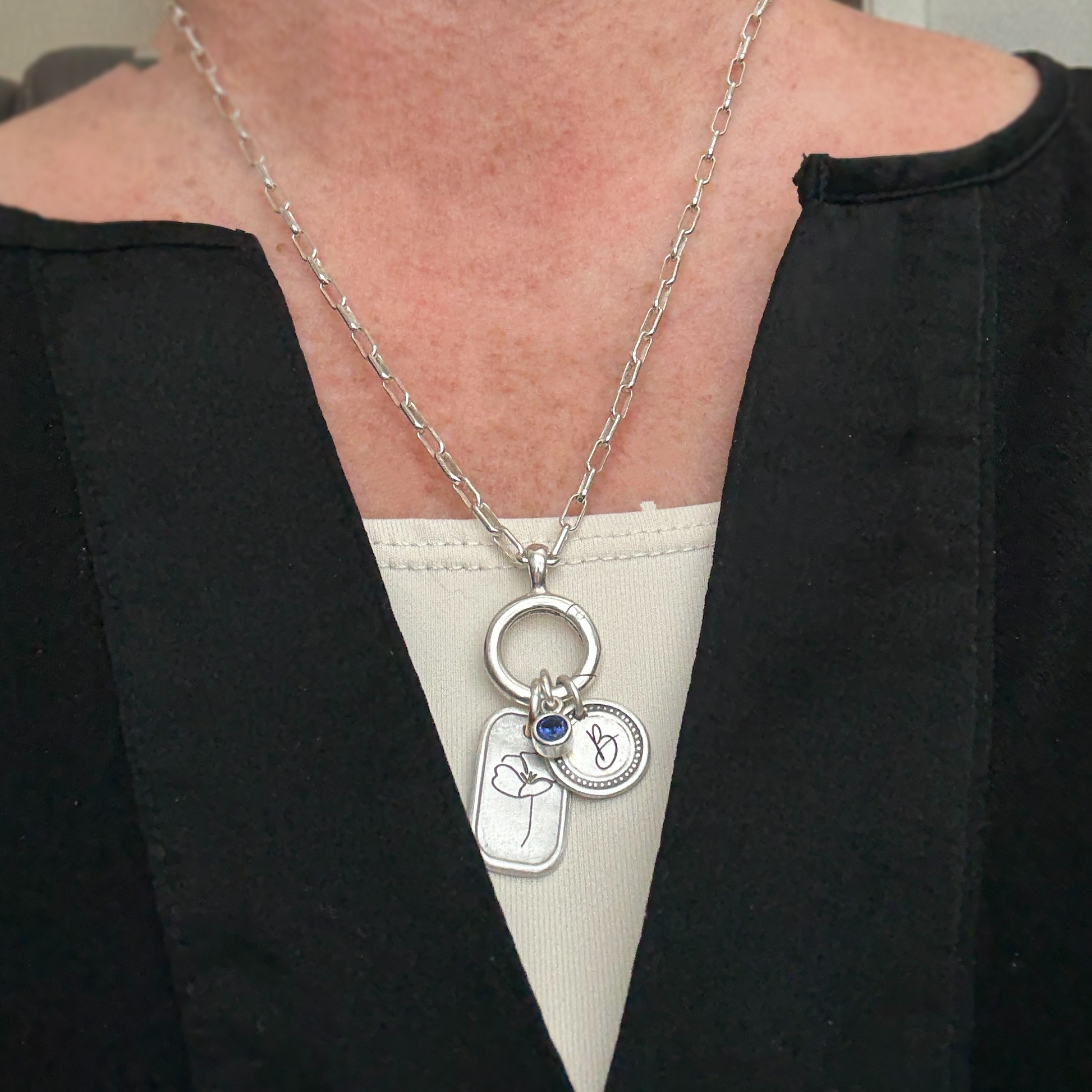 ADD 18" CHAIN NECKLACE our sleek, sterling silver 18" oval paperclip style necklace. Each thick link is approximately ¼” length x 1/8” width giving it a streamlined look perfect as the foundation for your birth month flower charm pendant. This chain is plated with fine silver to ensure a bright white color and to help protect against tarnish.